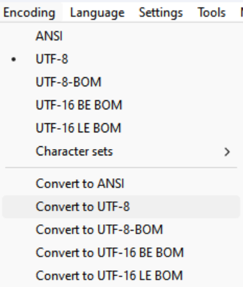 - From the Edit menu, select EOL Conversion > Windows (CR LF).
